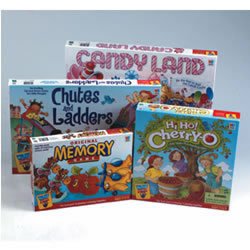 - Set includes Candy Land, Chutes and Ladders, Memory Game, and Hi Ho! Cherry-O