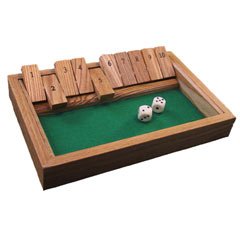 Played for centuries as a pub gambling game, this classic can now be a favorite in your home. Roll the die and flip the tiles to equal the dice roll. If you roll a 7 flip up a 7, or a 5 and a 2, or a 4, a 2, and a 1. Adults can play pub-style for the pot, or help the younger one's learn basic counting skills. This classic is also great as a solitaire game or played with the whole family. This quality, all-wood game includes box with flip tiles, 2 dice, and instructions for three versions of play. Game measures 8.5 x 5.5 and is for 1+ players.
