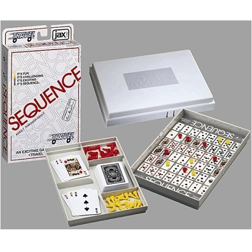 Now you can take the popular family game on all your family trips! Compact and easy to pack, Travel Sequence is perfect for plane rides, camping trips, or wherever your travels may take you. It's still the same exciting game of strategy and luck that all ages enjoy. The familiar Sequence board is contained within the lid of the plastic carrying case. Pegs replace chips as the way to mark the cards on the game board so they'll stay in place on a bumpy ride. The miniature deck of cards measures 2 ½ x 1 ¾. Easy enough for children and still challenging for adults, Sequence has been a family favorite for generations. Travel Sequence comes with a Sequence game board, Sequence playing cards, Pegs, Game Instructions, and packaged in a convenient plastic travel case. For 2 or More Players, Ages 7 and Up.