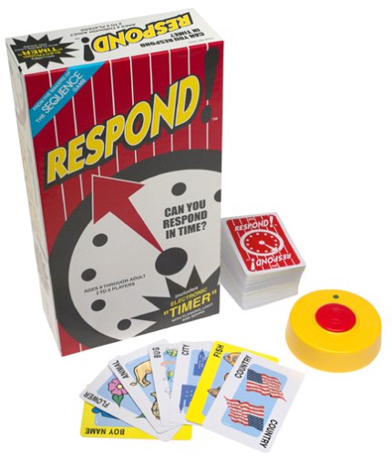 Respond! The amazingly amusing word game where you pick a category from the cards in your hand and name an item that belongs in that category. With every quick correct answer, you throw away a card. Be the first player to get rid of all your cards and you win!For 2 - 6 players, ages 8 and up.Contents: 108 playing cards, 1 custom timer and game instructions.
