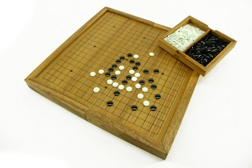 Go, is an ancient Chinese and Japanese game. Some say that while it takes only 5 minutes to learn the rules, it takes 50 to master! Anyone can learn these simple rules but it takes a long time to develop a good strategy. The object of the game is to create the largest space/territory possible out of your beads (whether they are white or black). Once a piece is put down it cannot be moved but be careful because if it is fully trapped then it can be eaten! The board is made from the beautiful monkey pod wood and it comes with black and white plastic beads.