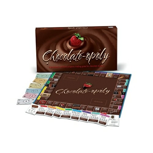 Chocolate-Opoly is a decadently delicious property trading game for chocolate lovers! Dark, milk, bittersweet, semi-sweet, in a shake, filled with caramel, covered in nuts, or as a warm, frothy brew--there's nothing the cocoa bean can't do. In Chocolate-Opoly players buy favorite chocolate properties, collect chunks of chocolate and trade them in for chocolate factories. Pay your conching fees, suppress your cravings or get sent to Chocoholics Anonymous! Here's a game for the true chocophile! For 2 to 6 players.